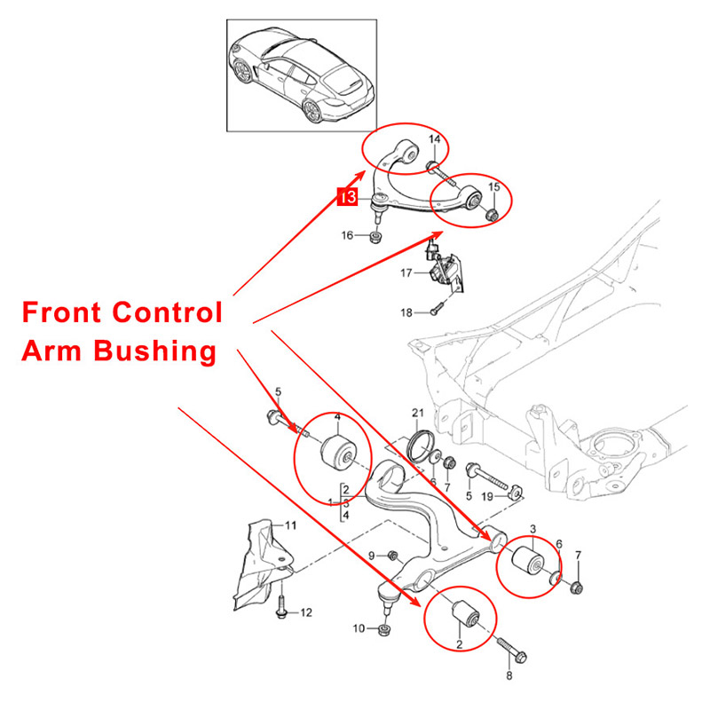 Porsche Panamera 2014–2016 Kit Bushing Lengan Kontrol Ngarep lan Ngisor